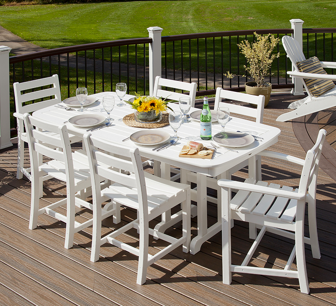 An enduring foundation for outdoor entertaining, the comfortable Monterey Bay 5-Piece Farmhouse Trestle Side Chair Dining Set offers seating for four around a spacious dining table. The dining chairs are designed with extra support and comfortable contours so conversation and laughter can flow freely. Built for durability and lasting good looks, it will bring everyone together time and time again.